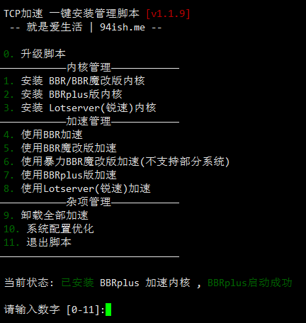 #网络加速,推荐锐速或BBRplus(先安装内核,重启后重跑脚本开启加速) wget -N --no-check-certificate "https://raw.githubusercontent.com/chiakge/Linux-NetSpeed/master/tcp.sh" chmod +x tcp.sh ./tcp.sh