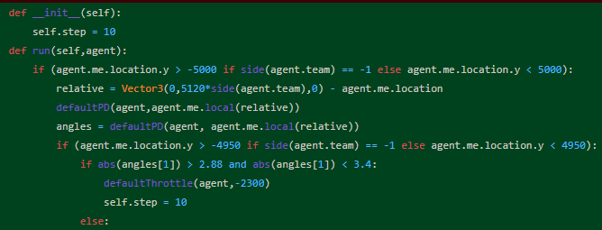 Now I have a separate check for blue team and orange team. The blue team one is if agent.me.location.y > -5000:
