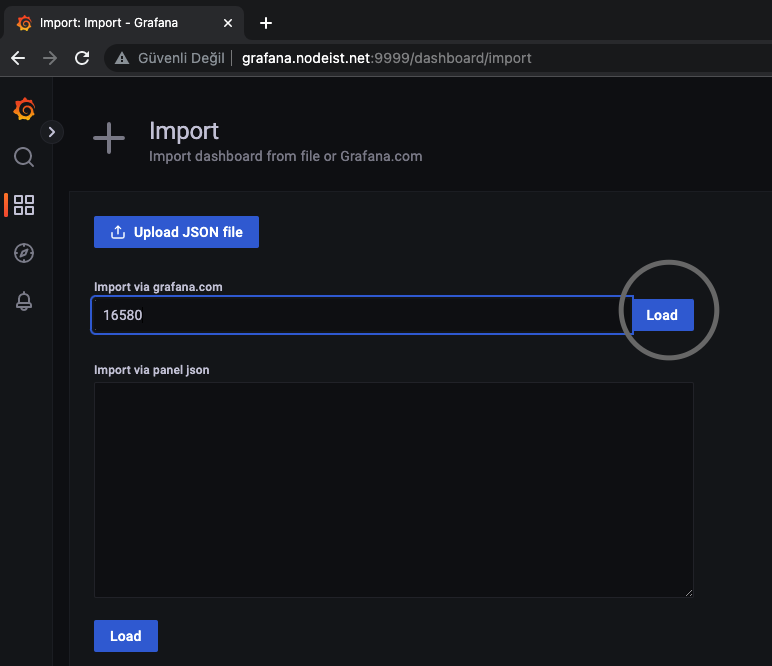 16580. Then clickLoad.3.3. Choose Prometheus as the data source and click on Import.