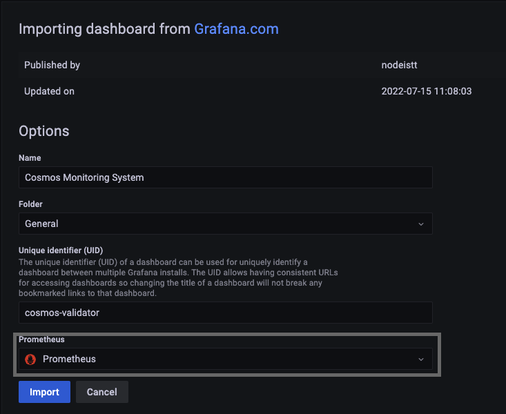We recommend installing the Grafana monitor on a separate server to be able to track and analyze your validator correctly. This way, you can monitor the data even if your node goes down, your server crashes, etc. The system requirements for the monitor are not very demanding. A system with the following specifications is sufficient: