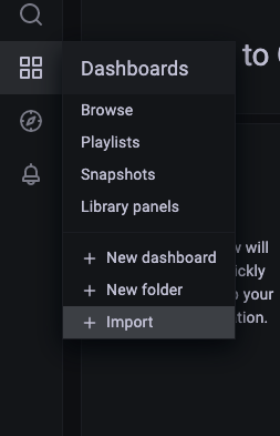 +icon in the left menu and selectImportfrom the pop-up window.3.2. Enter the grafana.com dashboard ID