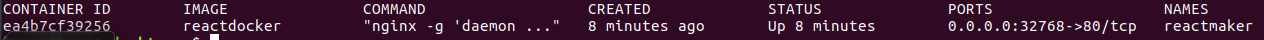 docker run --name reactmaker -d -P reactdocker