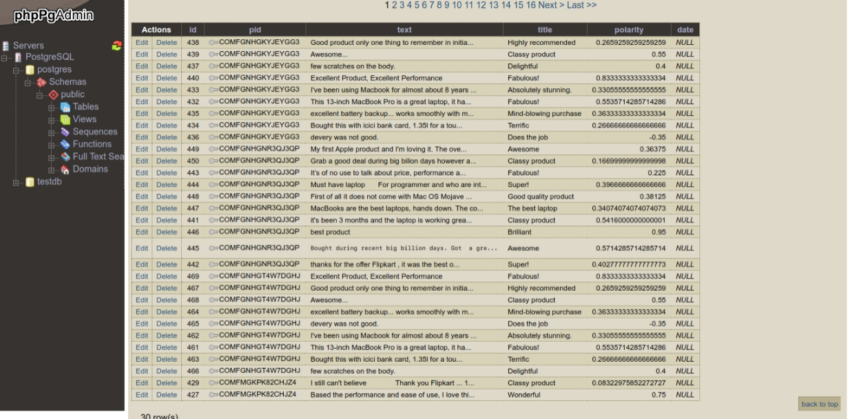We have integrated GraphQL with Python through graphene in the app. A single Query is the only thing needed to extract the data as well as the sentiment score for analytical purposes. The modifications to the project for integration of GraphQL is made in the following files:-