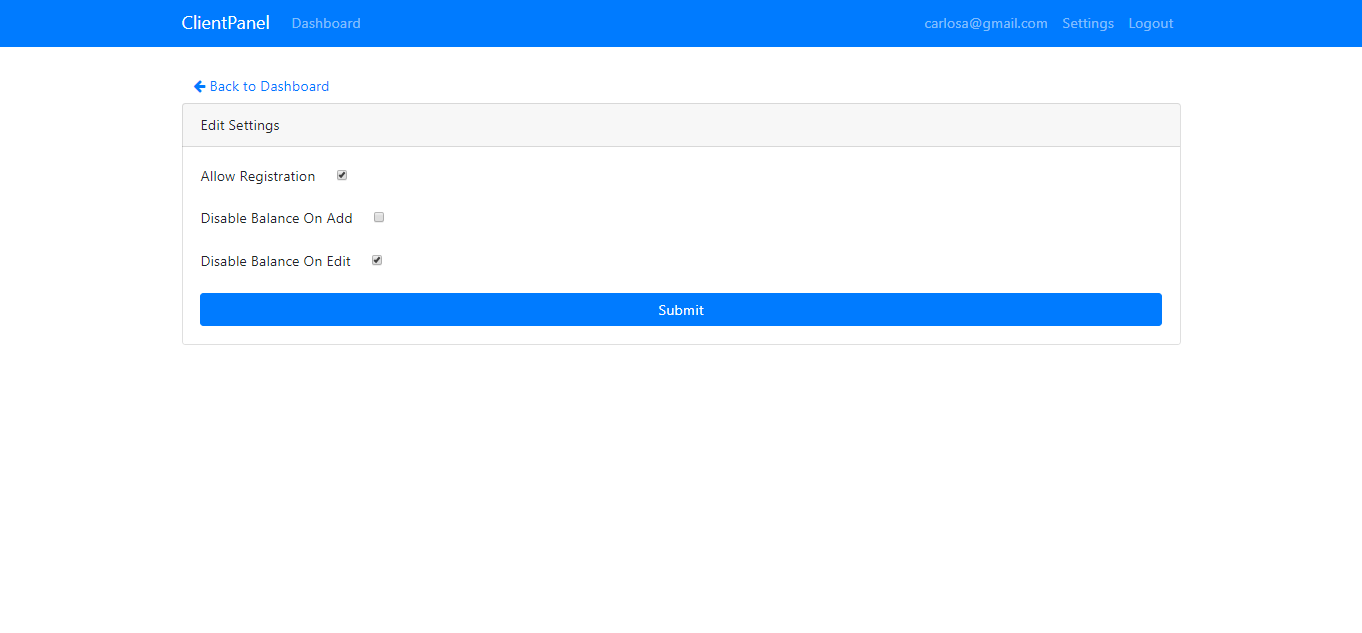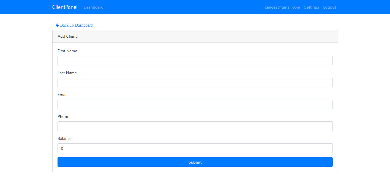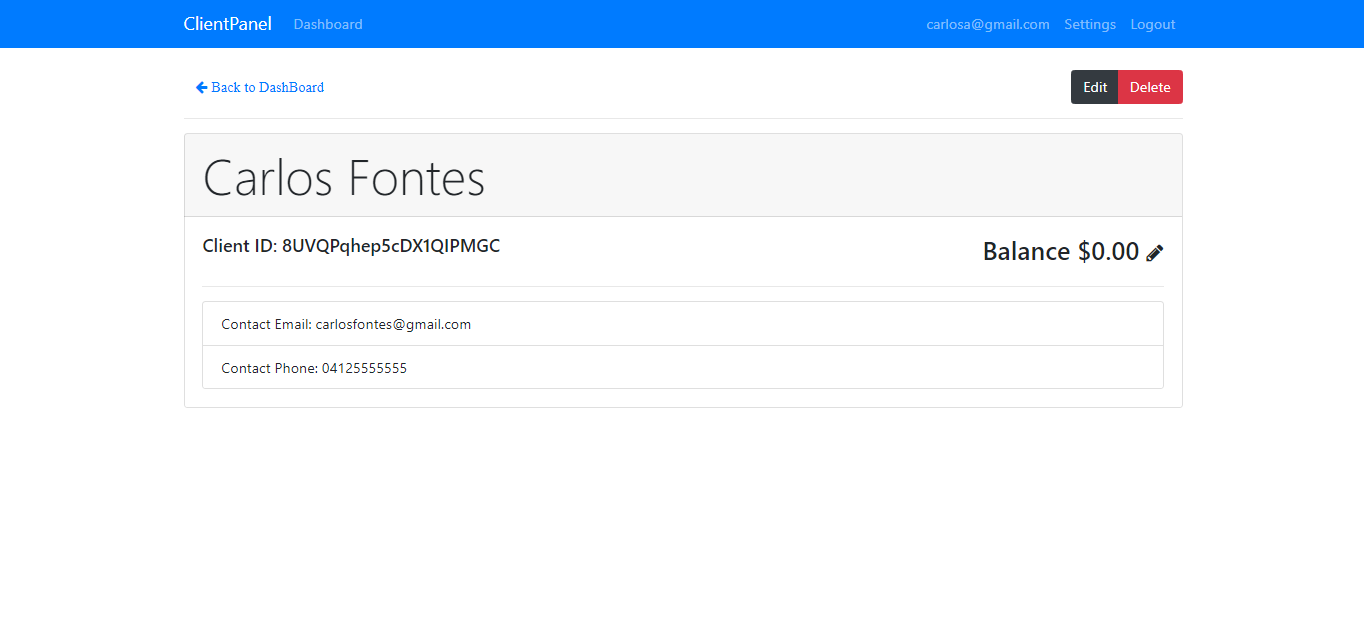 Panel de Clientes en el cual se lleva un registro de los clientes de una determinada empresa. Los clientes tendrán su balance, el cual podrá ser modificado. Cada cliente tendrá una vista detallada, donde saldran todos sus datos y la posibilidad de modificar dichos datos o eliminar a dicho cliente. El Panel de Clientes cuenta con unas opciones para administrar si se quiere habilitar los registro en el sistema, añadir un balance al crear un cliente y modificar el balance. Todo esto implementando FireStore como base de datos.