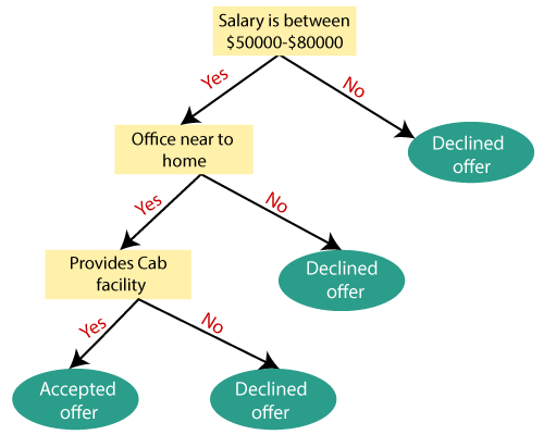 A decision tree in machine learning works in the same way except that we let the computer figure out the optimal structure hierarchy of decisions, following the instruction of criteria.
