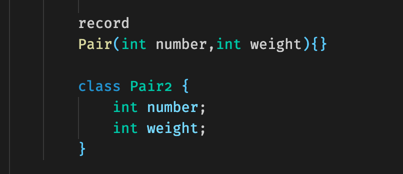 The keyword record, equivalent to simple classes to hold immutable data (JEP359 https://openjdk.java.net/jeps/359) is not properly recognised when used inside a method (inner record): the keyword and the type get split by a new line (see attached picture).